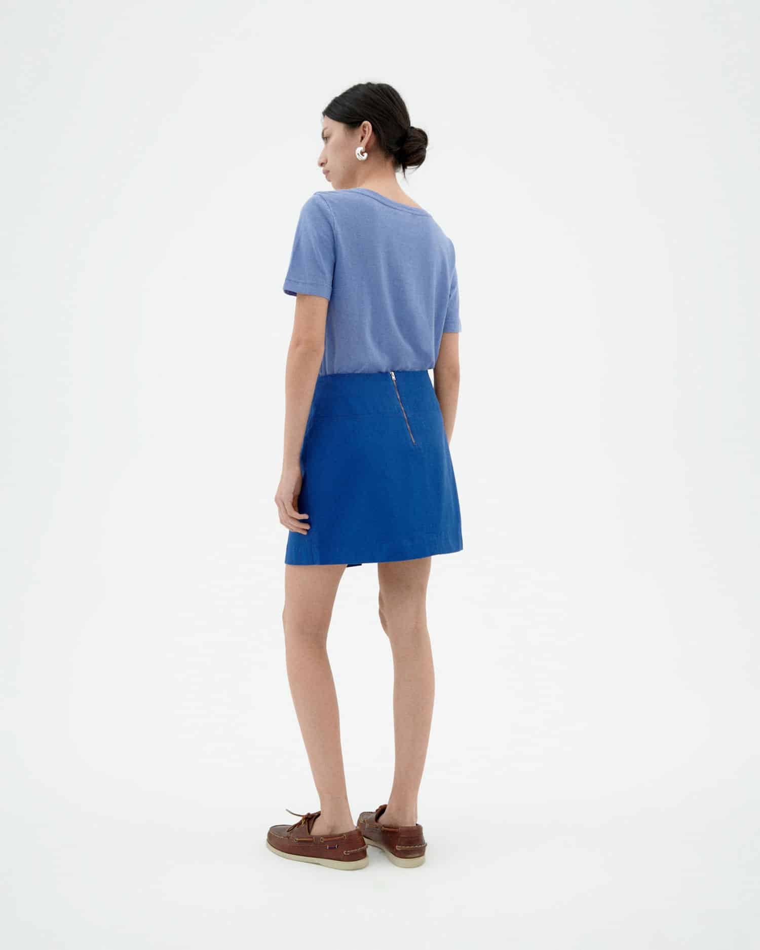 Blue skirt made of organic cotton. Flared cut, back zipper closure and gusset in front seam.